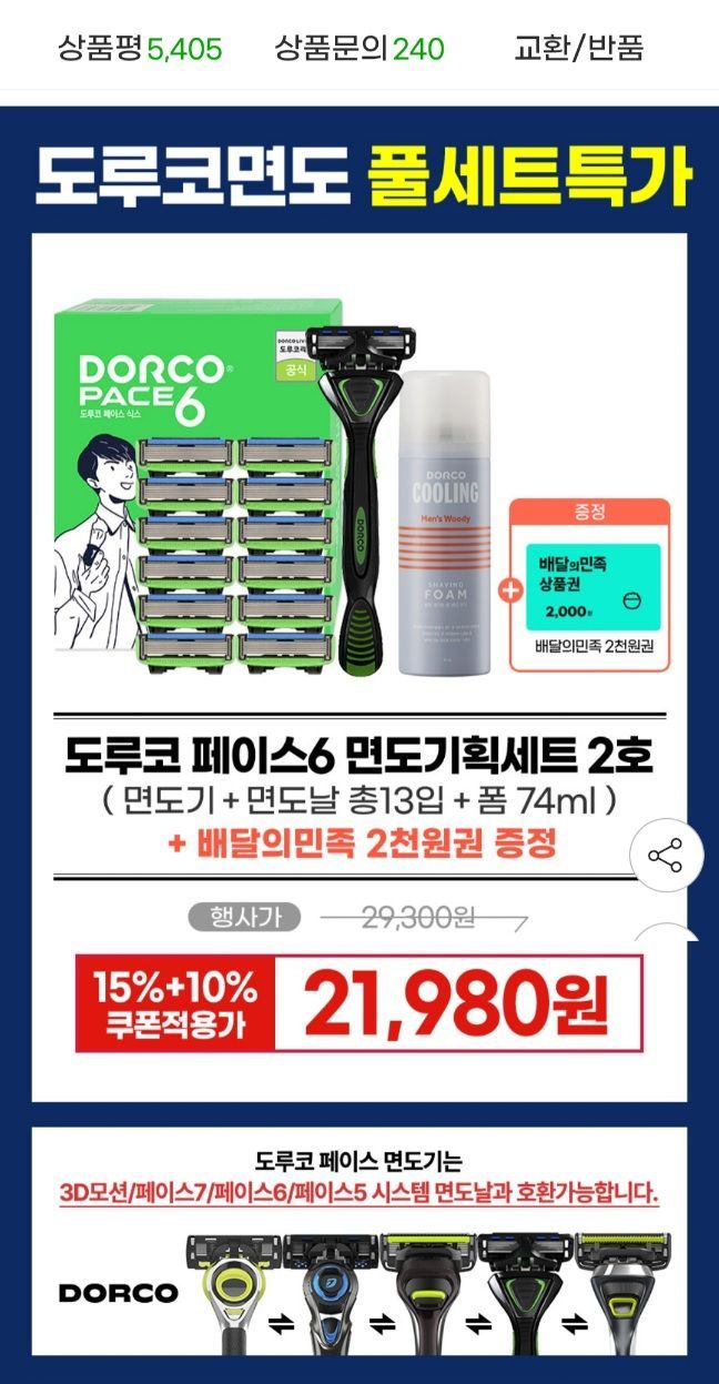 | 쇼핑엔티 | 도루코 페이스6 면도기획세트 2호 (면도기+날 총13입+74ml폼) | 32,900원 | 할인가, 적립금 혜택 포함 |