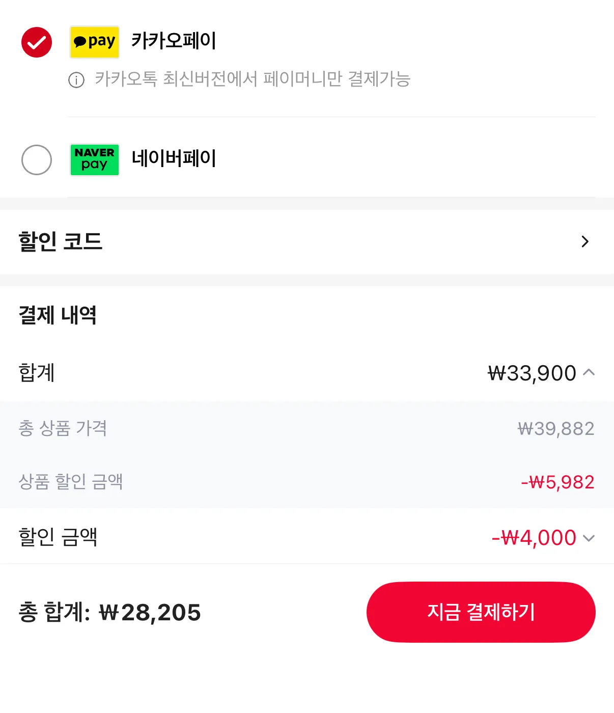 쿠폰코드 AEKA03 입력하면 최종 28,205원임