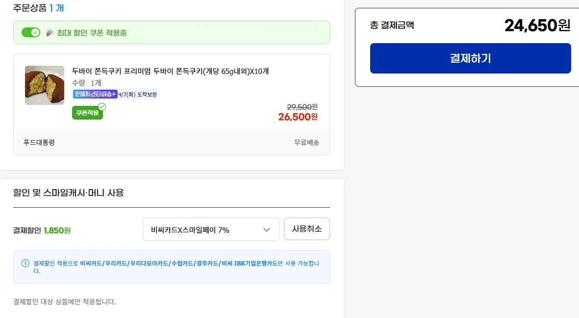 | G마켓 | 두바이쫀득쿠키 10개 | 24,650원 | 핫딜모음에서 제공한 가격 |
