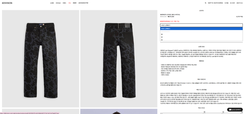 리바이스 일본생산인 블루탭 라인에 독특한 패턴 스티치 까지 들어갔는데 할인과 할인코드 까지 적용하면 가격 좋네요