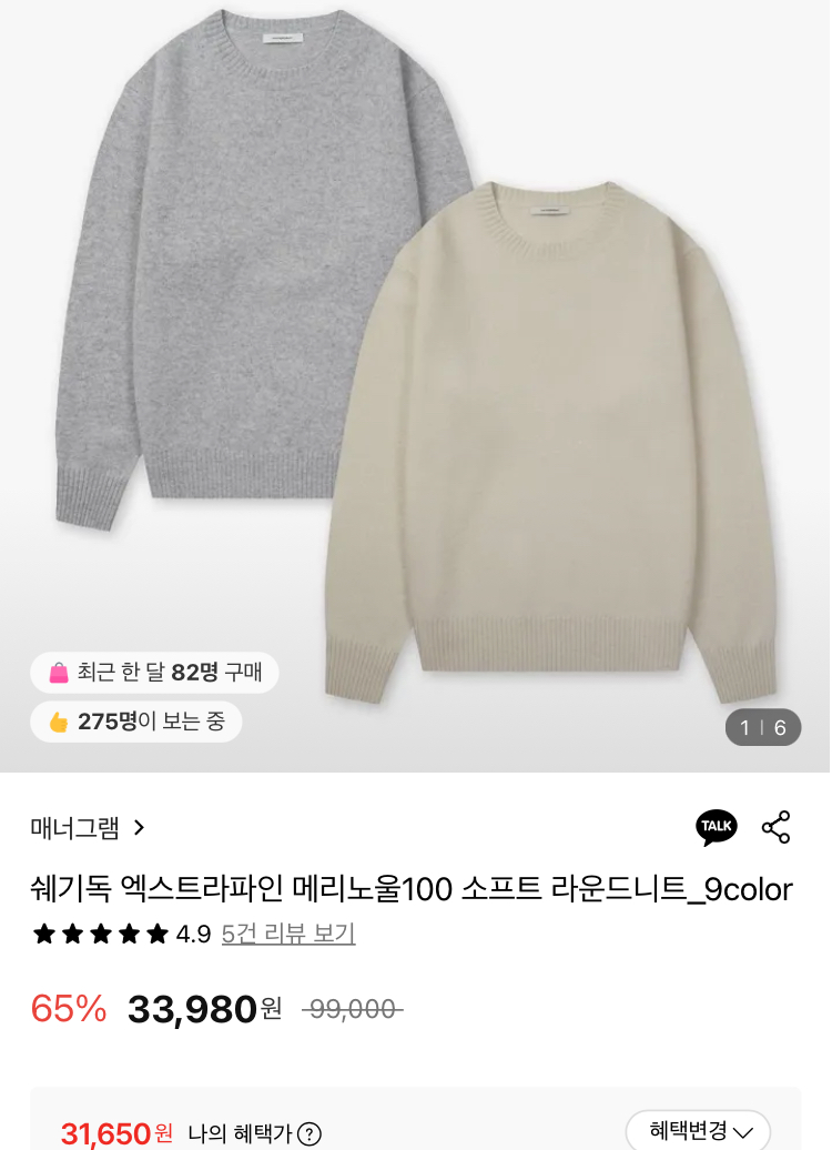 | 롯데온 | 매너그램 엑스트라파인 메리노울100 니트 | 31,650원 | 핫딜모음에서 제공한 가격 |