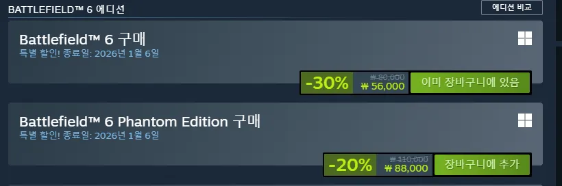 | EA (PC 스탠다드) | 배틀필드6 스탠다드 에디션 | 80,000원 | 정상 가격 |