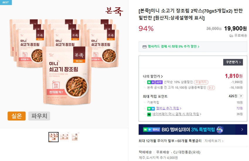 | 네이버 | 본죽 미니 소고기 장조림 70g 10개 | 1,810원 | 핫딜모음에서 제공한 가격 |