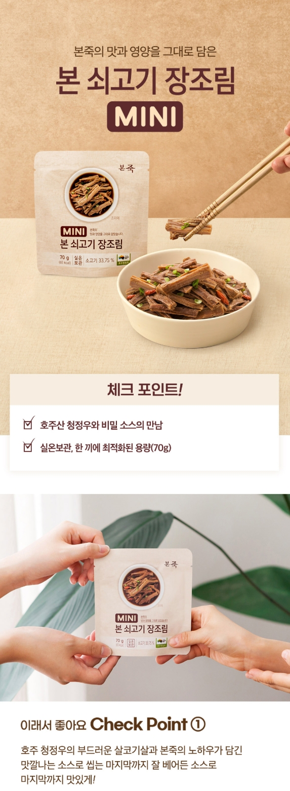 | 쿠팡 | 본아이에프 본죽 본 쇠고기 장조림 미니 70g (10개) | 22,900원 | 다나와 최저가 기준 |