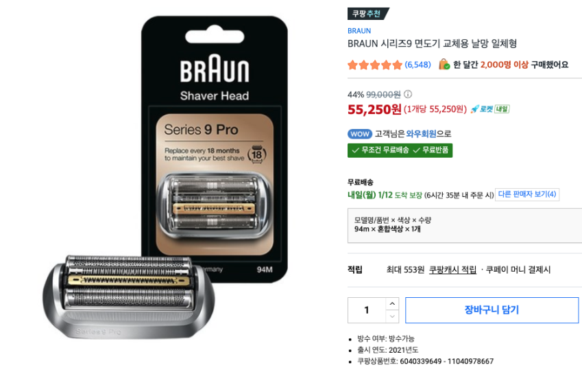 | 카카오톡스토어(무진스토어) | 브라운 면도날 94M 시리즈 9 프로 | 39,900원 | 92M/92S/92B 호환 표기된 동일 규격 호환모델 |