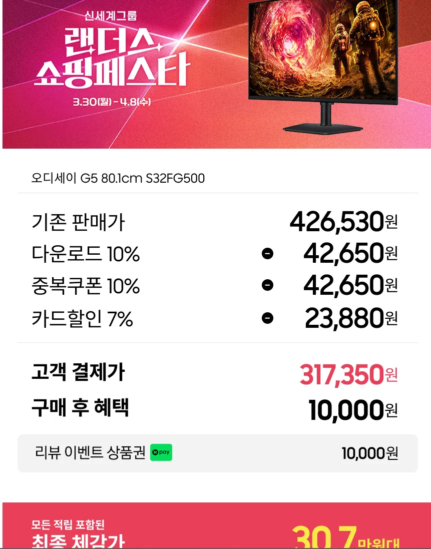 요즘 저가모니터 공세가 쎄긴한데 그래도 삼성 32qhd 30이면 낫배드급