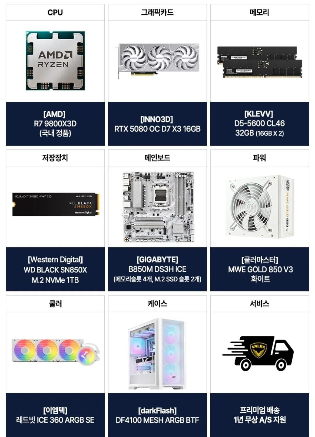 삼카) 9800X3D+RTX5080+32GB+1TB 화이트 게이밍컴퓨터