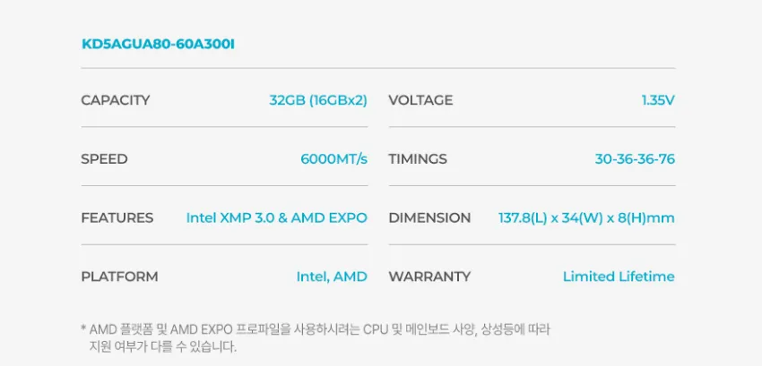 서린공식 ESSENCORE KLEVV DDR5-6000 CL30 BOLT V 32GB (16X2)