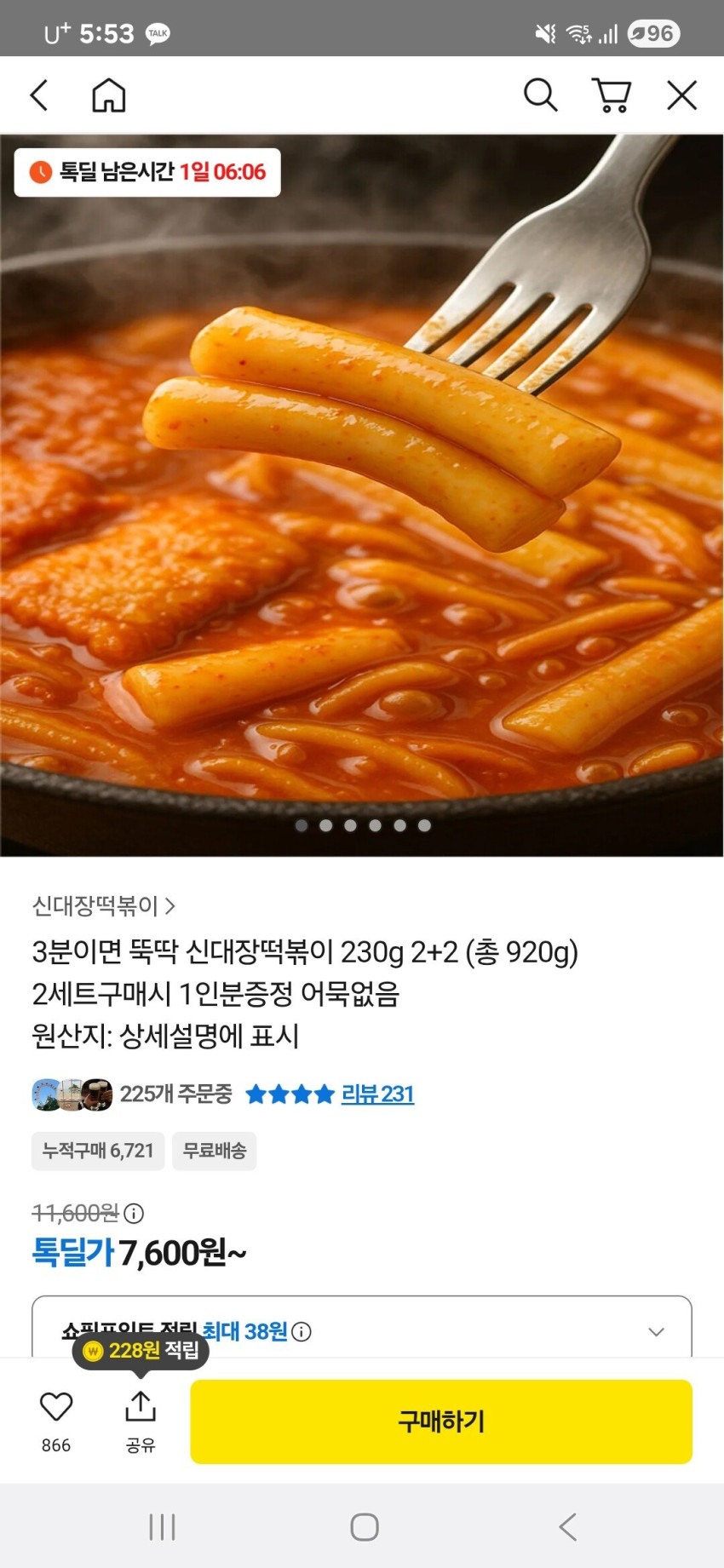 | 카카오스토어 | 신대장떡볶이 230g 2+2 (총 920g) | 7,100원 | 핫딜모음에서 제공한 가격 |