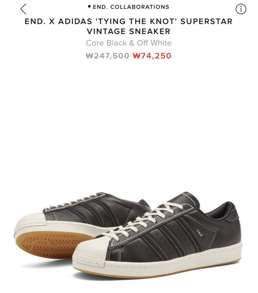 | 엔드클로딩 | 아디다스 x 엔드 슈퍼스타 빈티지 타잉 더 노트 | 113,750원 | 핫딜모음에서 제공한 가격 |