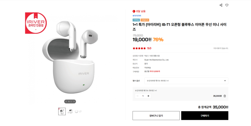 | 인더마켓 | 아이리버 IB-T1 오픈형 블루투스 이어폰 1+1 | 33,000원 | 핫딜모음에서 제공한 가격 |