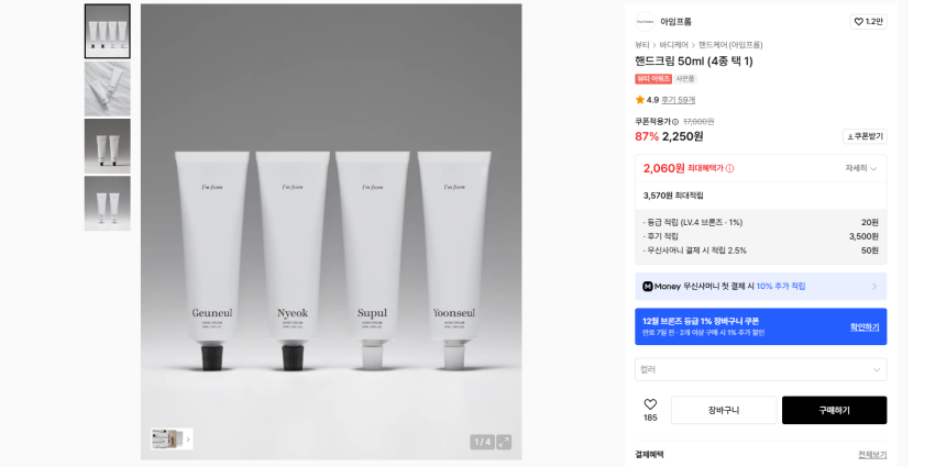 | 무신사 | 아임프롬 핸드크림 50ml 브론즈 기준 | 2,060원 | 핫딜모음에서 제공한 가격 |