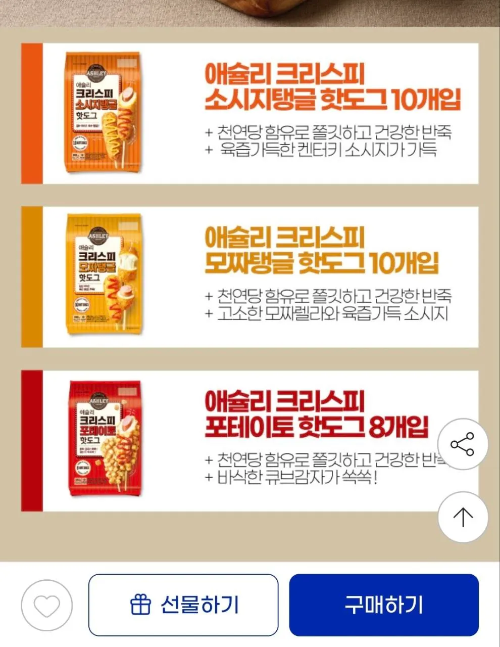 | eeye(핫딜 수집 사이트) | 애슐리 크리스피 핫도그 3종 골라담기 16-20개 — 유사 구성 | 16,620원 | 핫딜 목록에 등장하는 동일·유사 상품의 과거/다른 등록가(참고용) |