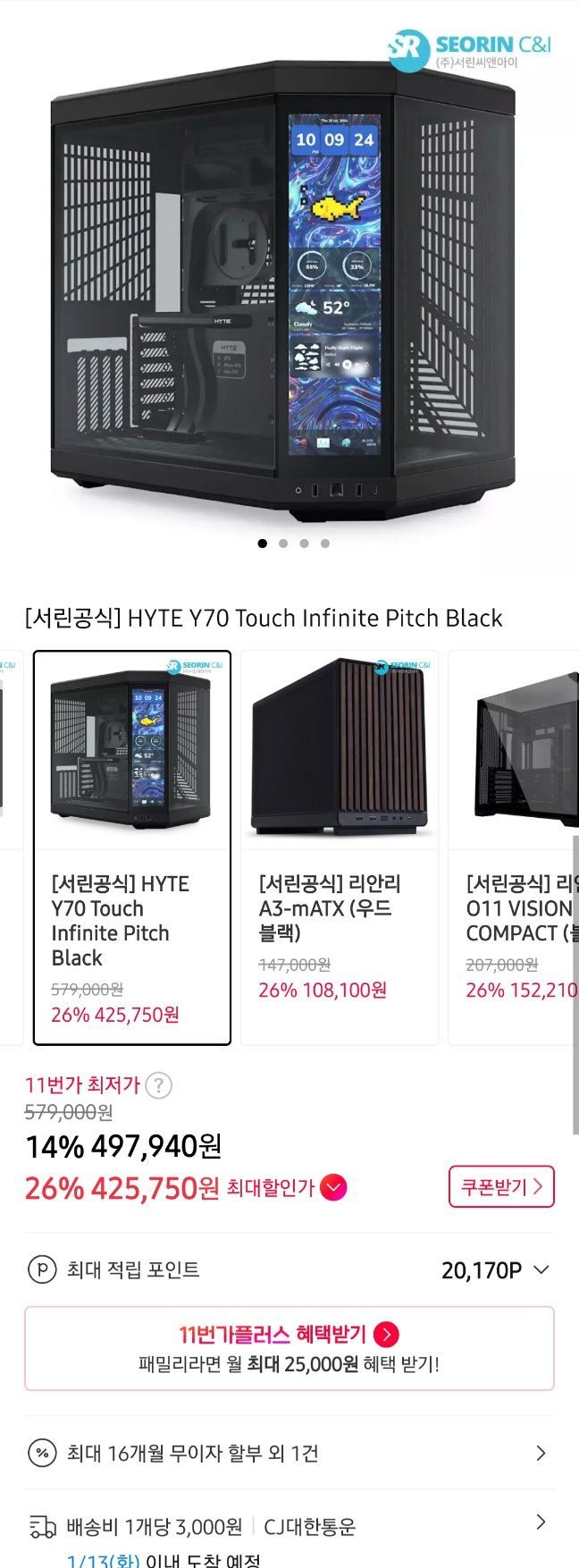 | 서린익스프레스 | HYTE Y70 Touch Infinite Panda White | 579,000원 | 판다 화이트 공식 유통사 판매가 |