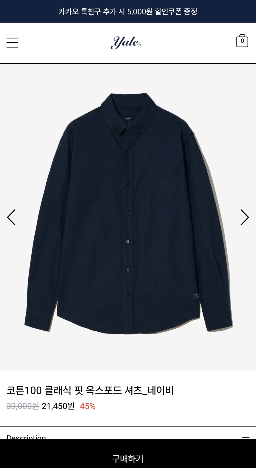 코튼100 클래식 핏 옥스포드 셔츠_네이비 21,450원