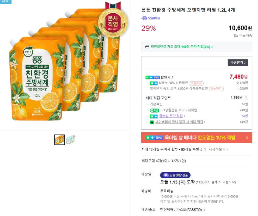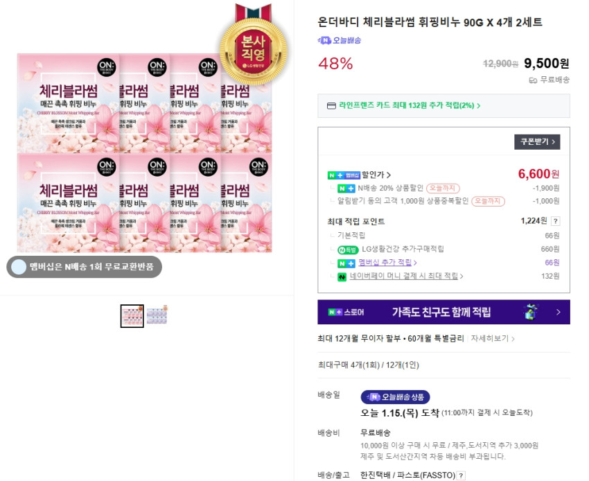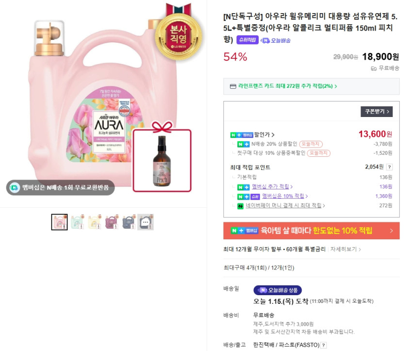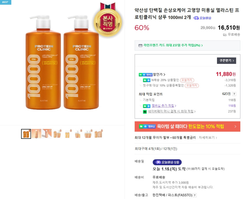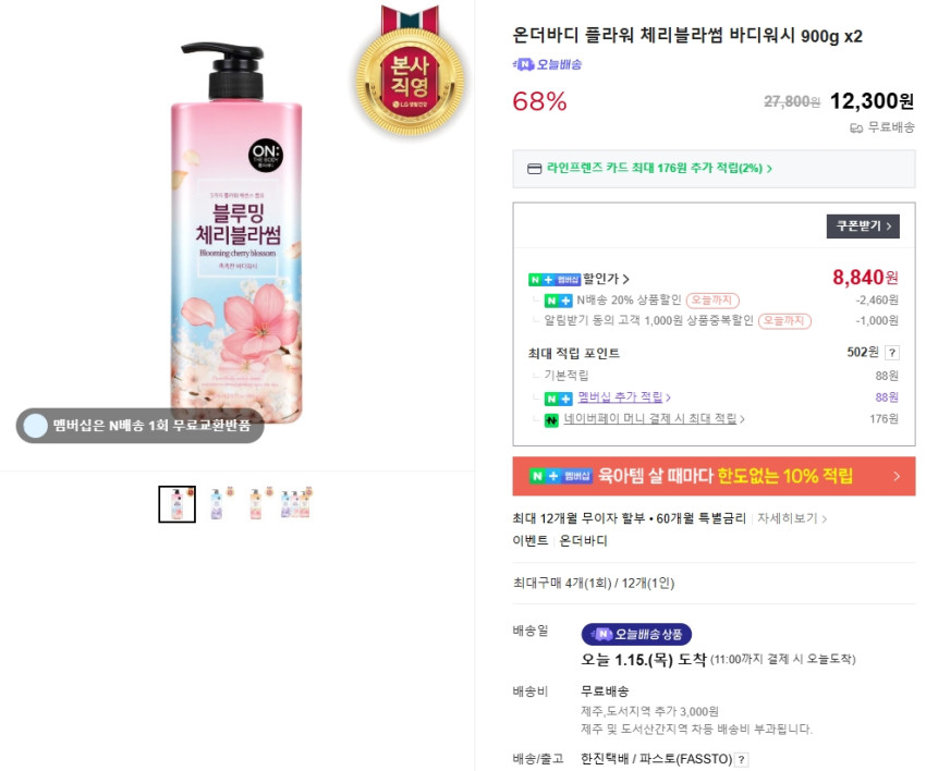 LG생활건강 스마트스토어 구매이력이 있으면 500원정도 비싼데 그래도 역대가입니다!