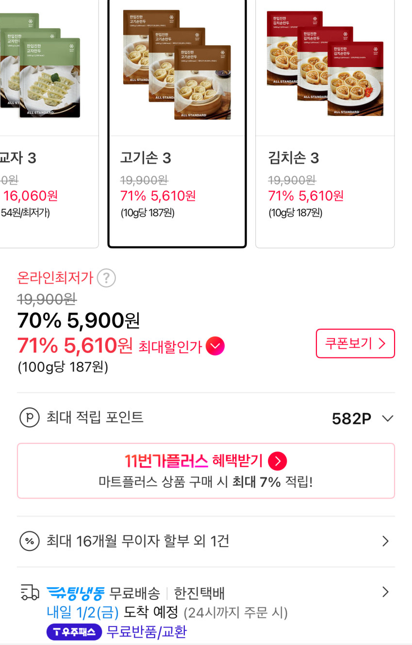 | 미확인 | 올스탠다드 손만두 1kg x 3개 | 5,610원 | 핫딜모음에서 제공한 가격 |
