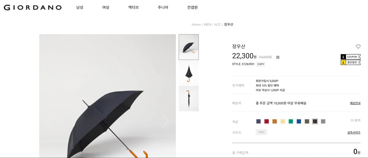지오다노 공식장우산17,800원3월 10% 쿠폰 적용 할인가
