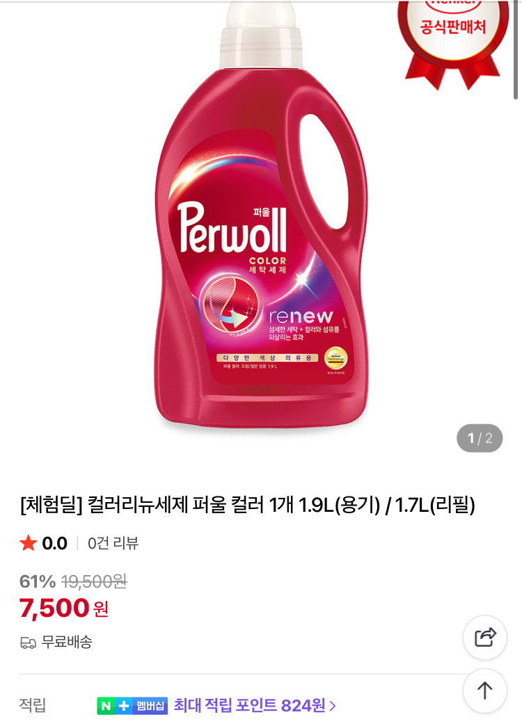 | 다나와 | 퍼울 컬러 리뉴 세탁세제 1.9L 1개 | 약 8,000원대 | 단품 최저가/100ml 단가 정보에서 환산한 대략적인 시세 |