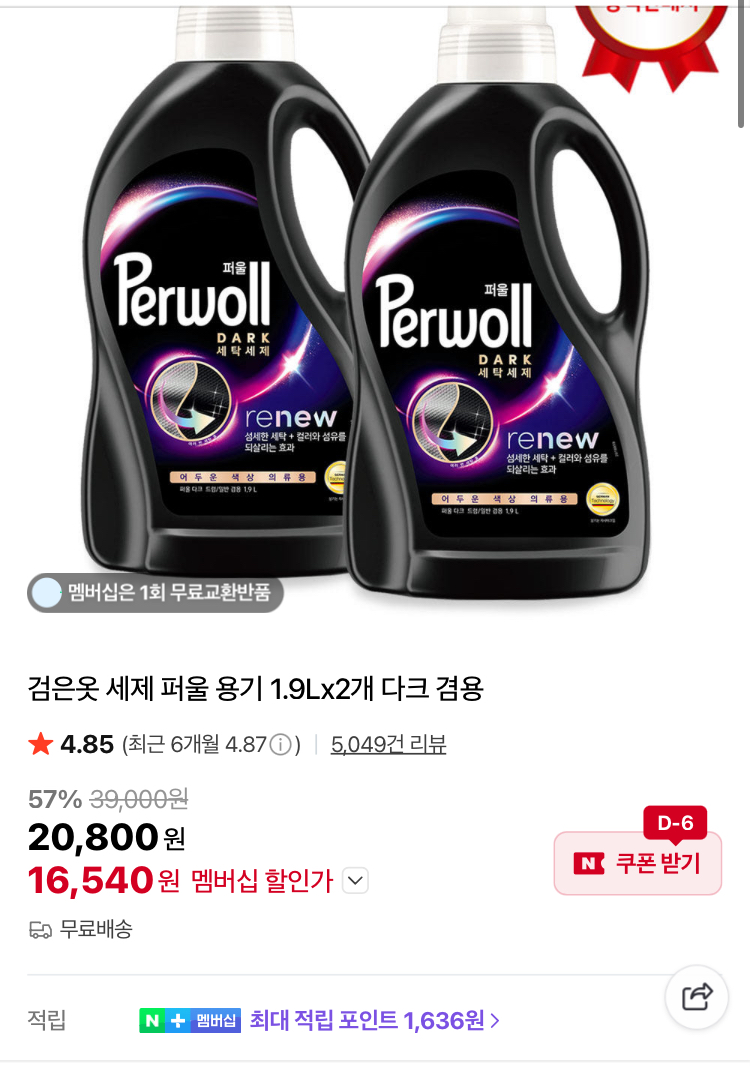 | 네이버 쇼핑라이브 | 컬러리뉴세제 퍼울 컬러 1개 | 7,500원 | 핫딜모음에서 제공한 가격 |