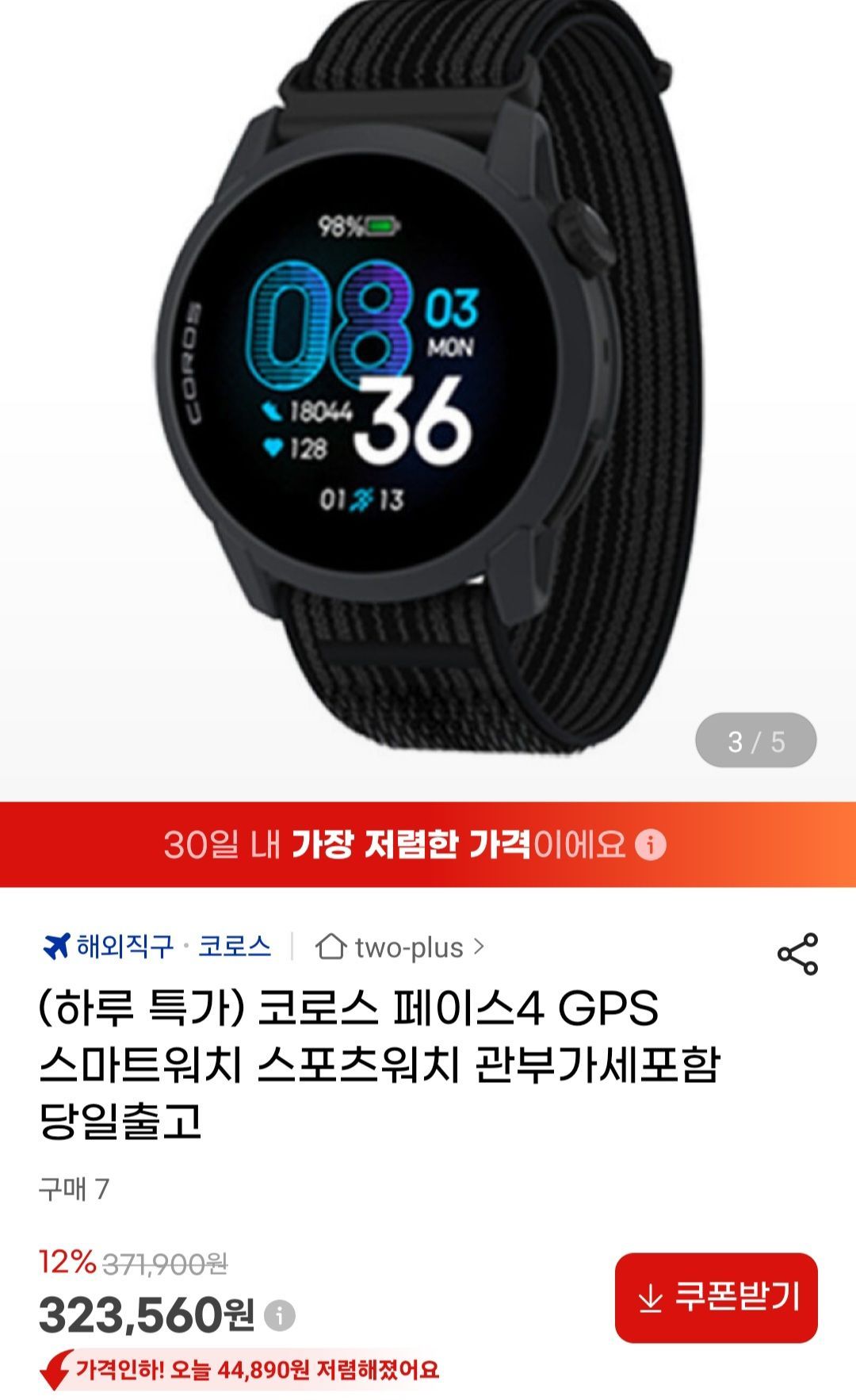 | 크로켓 | 코로스 페이스4 GPS 스마트워치 스포츠워치 | 364,854원 | 관부가세 포함, 쿠폰 할인 적용 |