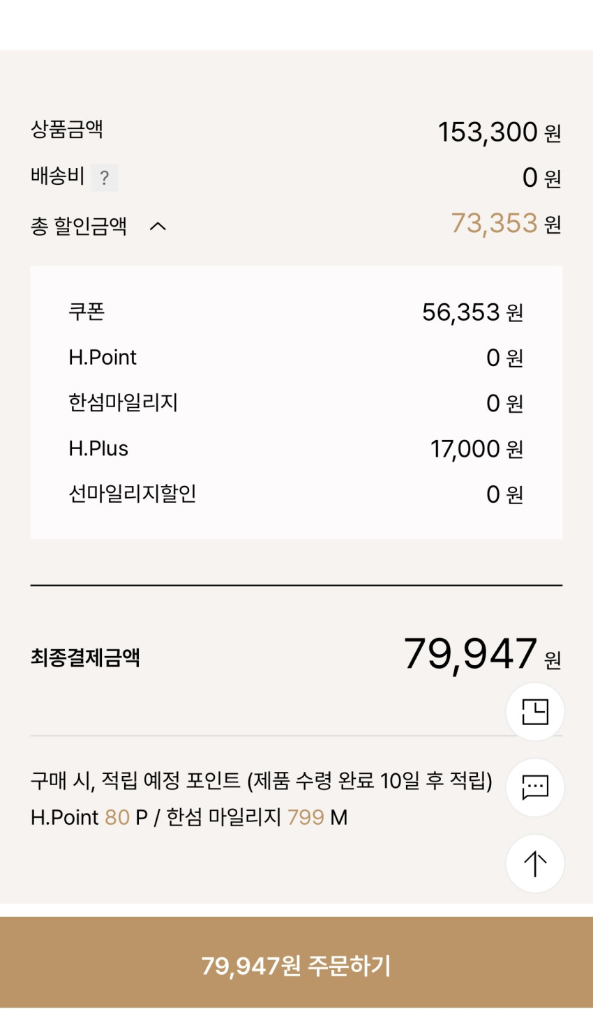 적용하면 최종가 79,947원으로 나오네요