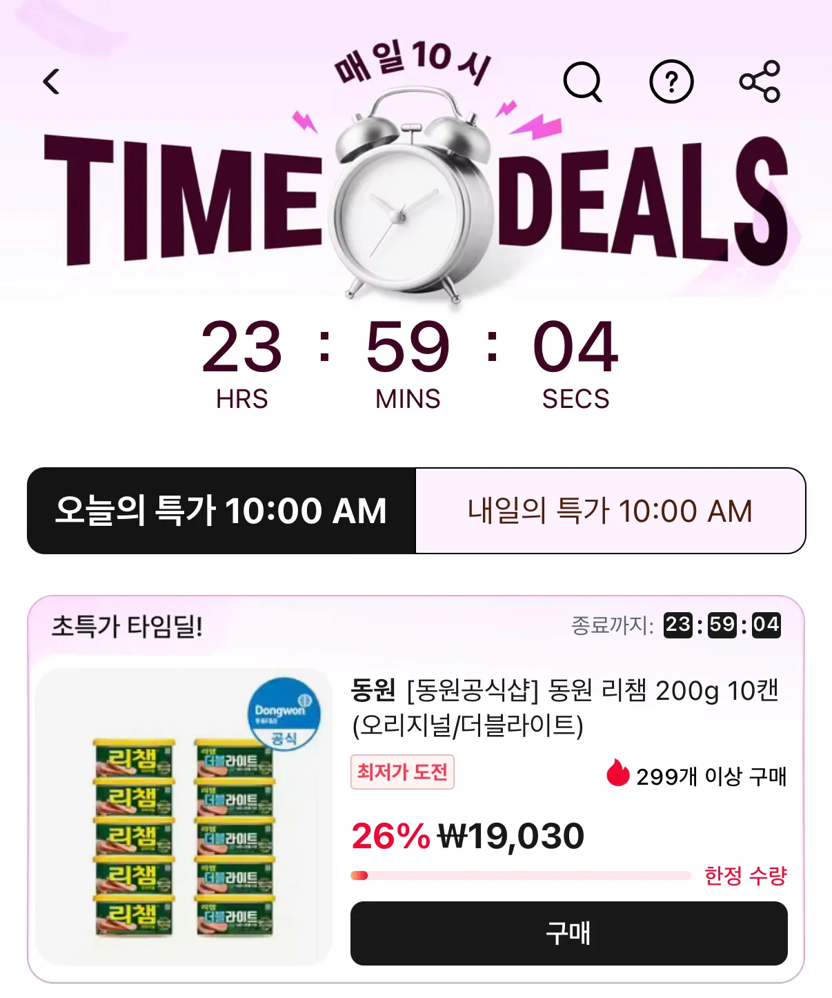 | 알리 | 타임딜) 동원 리챔 200g 10캔 오리지널·더블라이트 | 19,030원 | 핫딜모음에서 제공한 가격 |