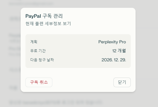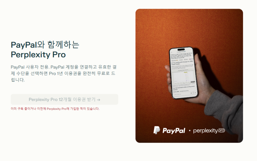 위 링크로 퍼플렉시티와 페이팔 연동시키면 프로버젼 1년 무료입니다.