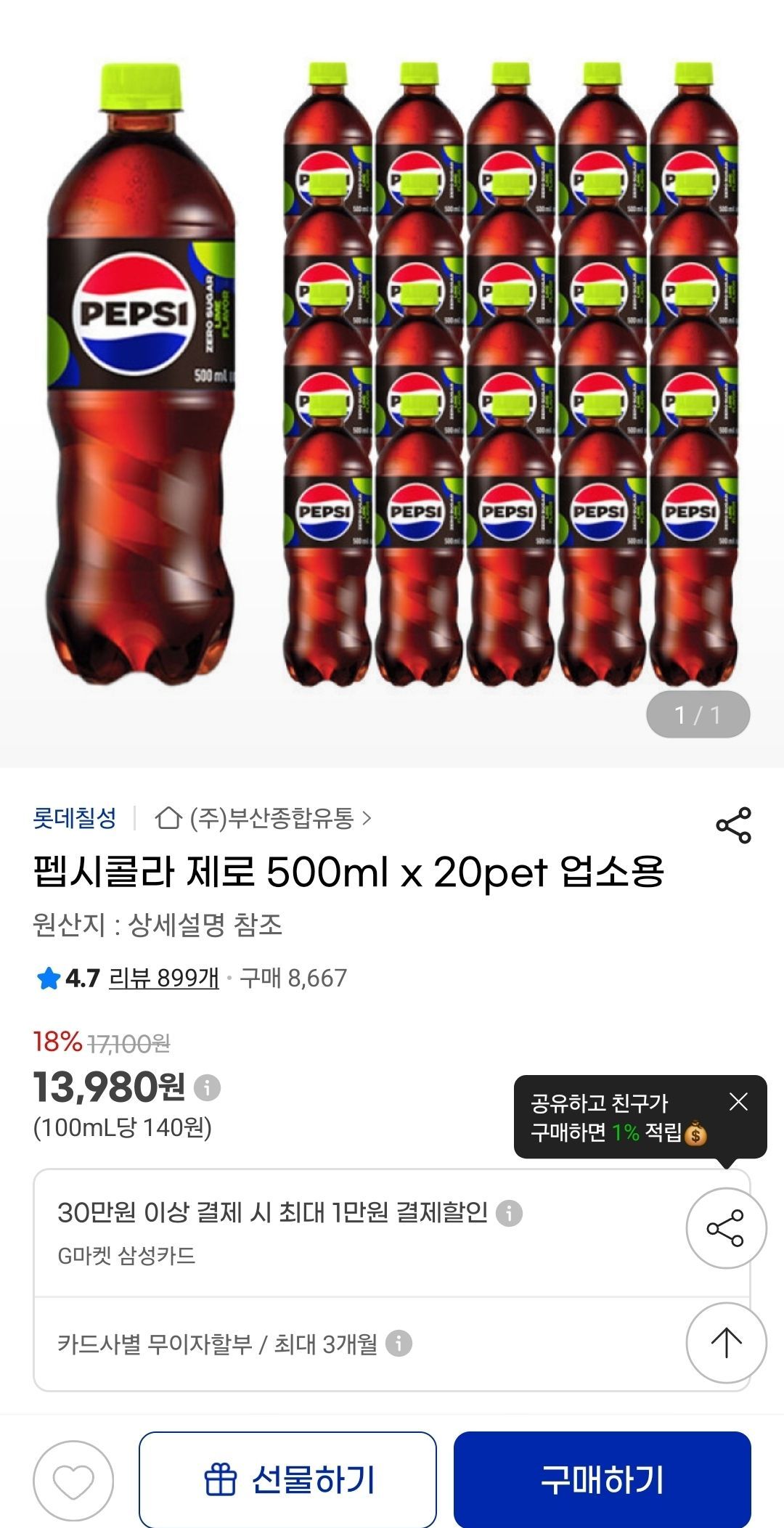 | G마켓 | 펩시 제로 라임 500ml 20개 (13,980원/무료) | 13,980원 | 핫딜모음에서 제공한 가격 |