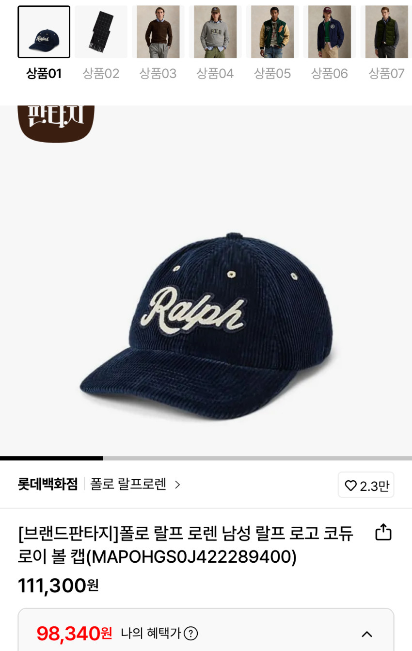 | 롯데온 | 폴로 랄프로렌 코듀로이 볼캡 | 98,340원 | 핫딜모음에서 제공한 가격 |