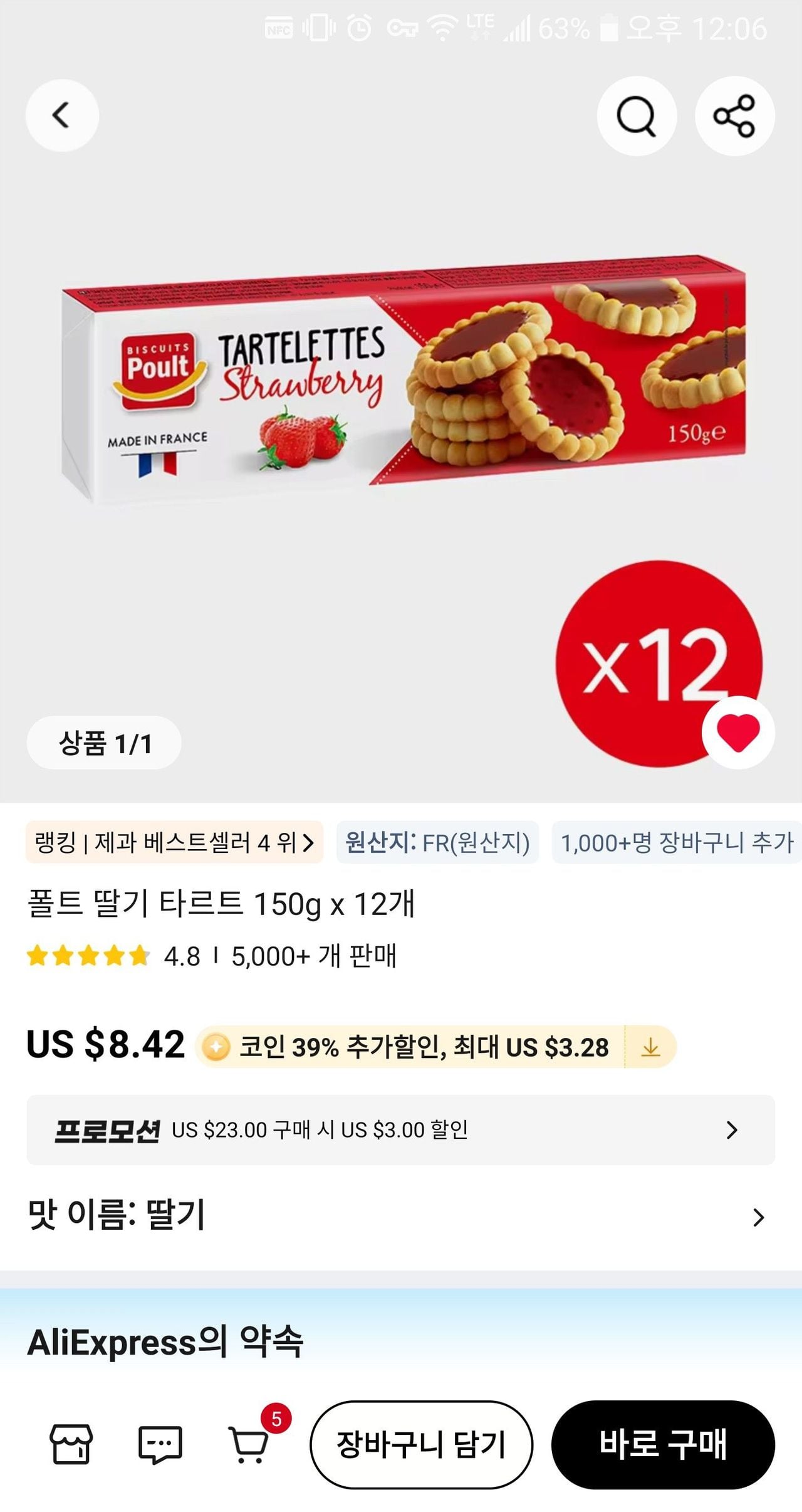 | 알리 코인샵 | 폴트 딸기 타르트 150g x 12개 | 7,338원 | 핫딜모음에서 제공한 가격 |