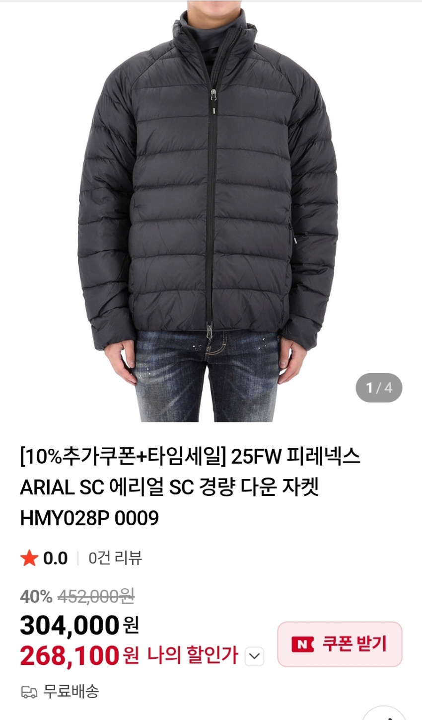 | 네이버 스마트스토어 | 피레넥스 애리얼 경량패딩 | 268,000원 | 핫딜모음에서 제공한 가격 |